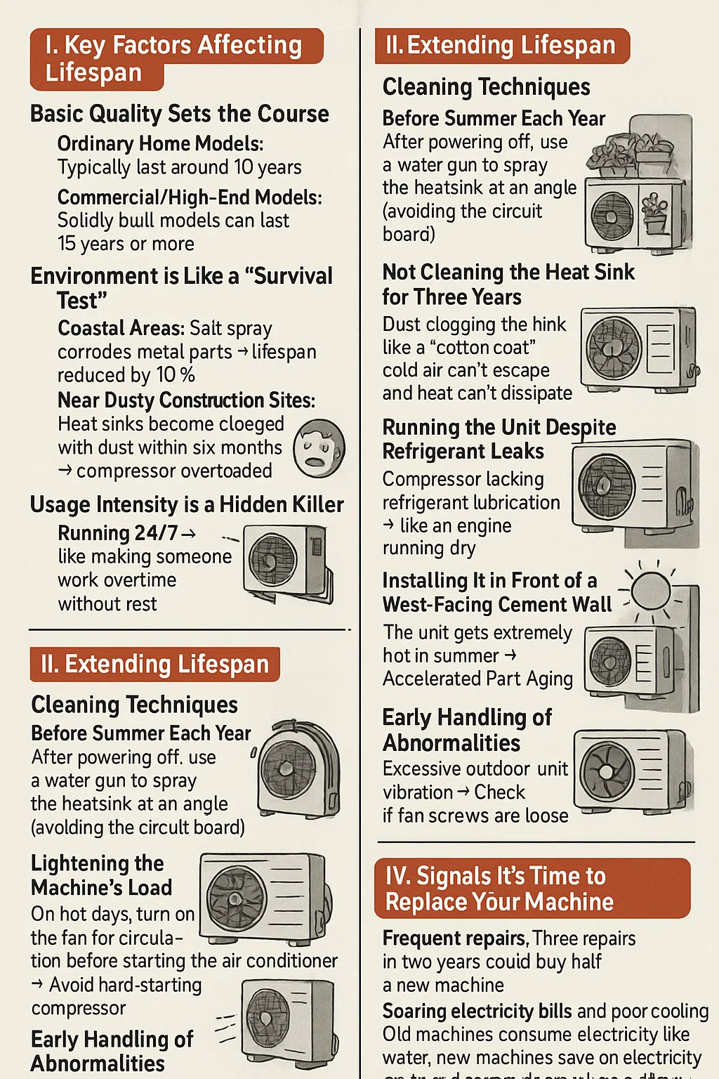 Como outros eletrodomésticos, a vida útil de um condensador de ar condicionado não é fixo, mas os hábitos diários de uso e manutenção determinam quanto tempo pode durar. Aqui estão os pontos principais: